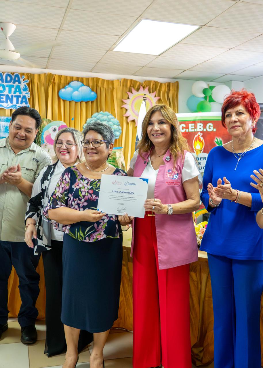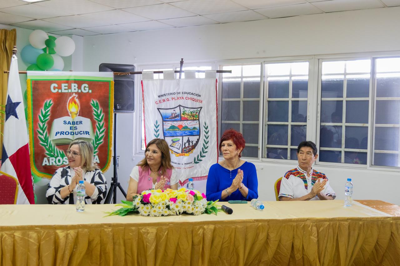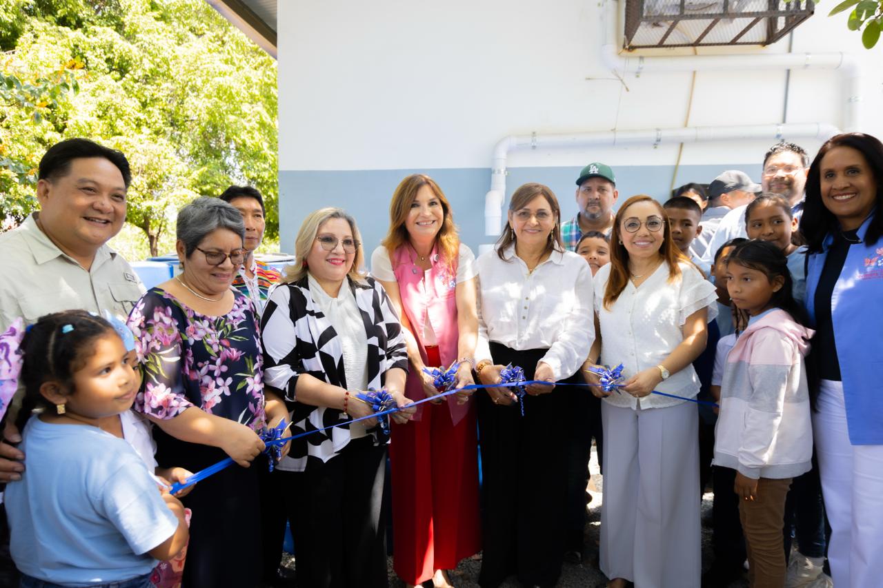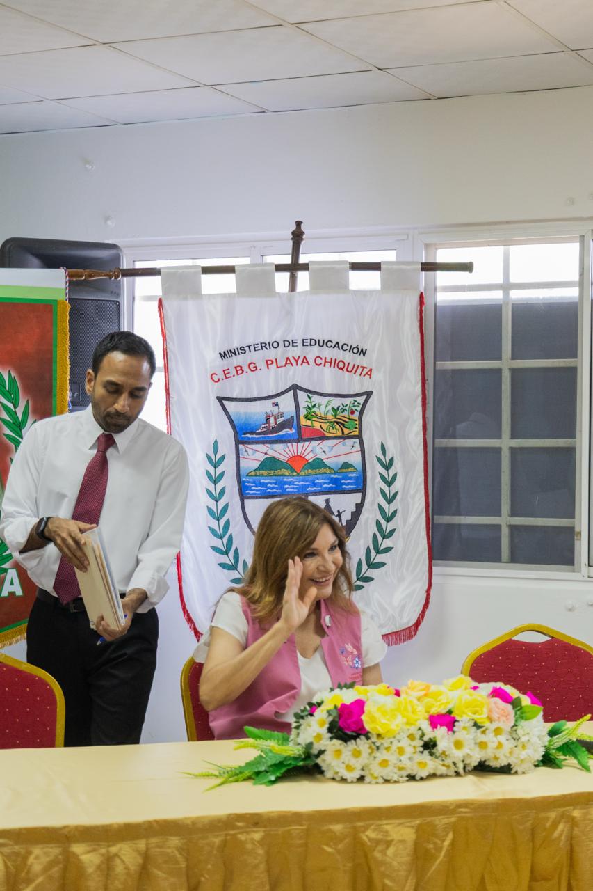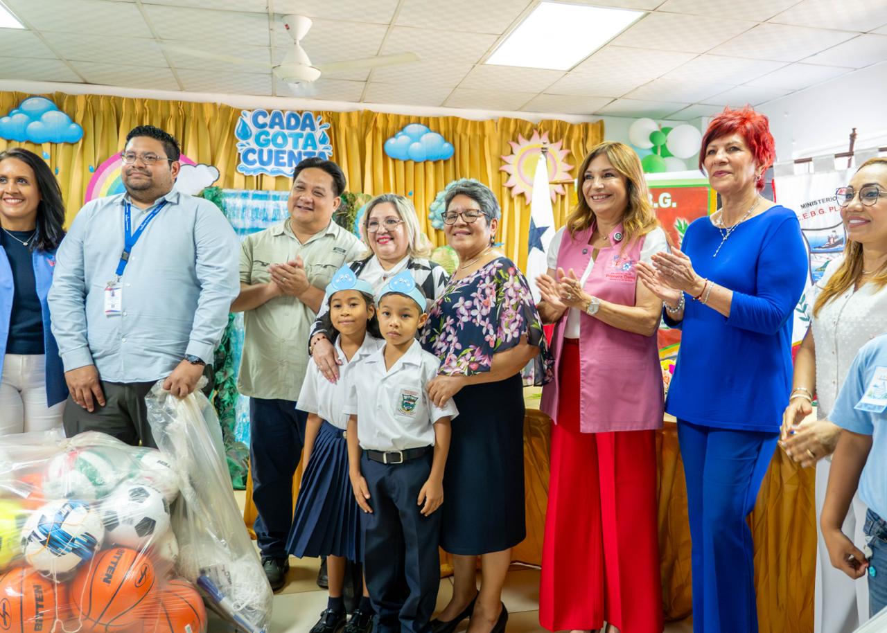 En Puerto Caimito, la Primera Dama, Maricel Cohen de Mulino, inauguró sistemas de captación y potabilización de agua en dos centros educativos, como parte del programa Lluvia de Felicidad.