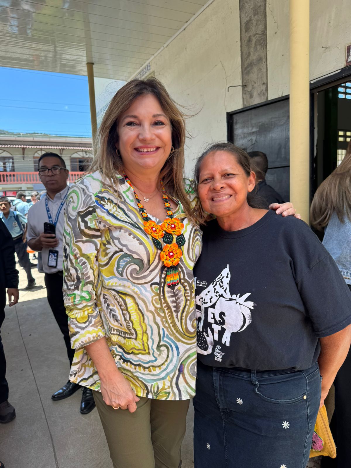 Acompañada por su equipo y representantes de la Fundación Rescate de Alimentos, la Primera Dama recorrió las instalaciones del centro escolar, donde actualmente más de 800 estudiantes almuerzan en los pasillos debido a que el comedor está siendo utilizado como aula por falta de espacios adecuados. Durante la visita, se identificó un módulo con varias aulas en desuso, el cual podría ser rehabilitado para devolverle a los estudiantes espacios dignos de aprendizaje y restituir la función original del comedor escolar.