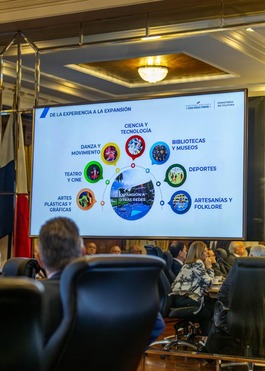 Asimismo, se mencionaron proyectos actualmente en ejecución, como los centros culturales ubicados en Cinta Costera (El Chorrillo), San Joaquín (Pedregal) y Ciudad Esperanza (Arraiján), así como el impacto positivo de iniciativas previas como la Red de Coros y Orquestas Juveniles, que ha demostrado resultados sostenidos en la formación de talento y la prevención social.