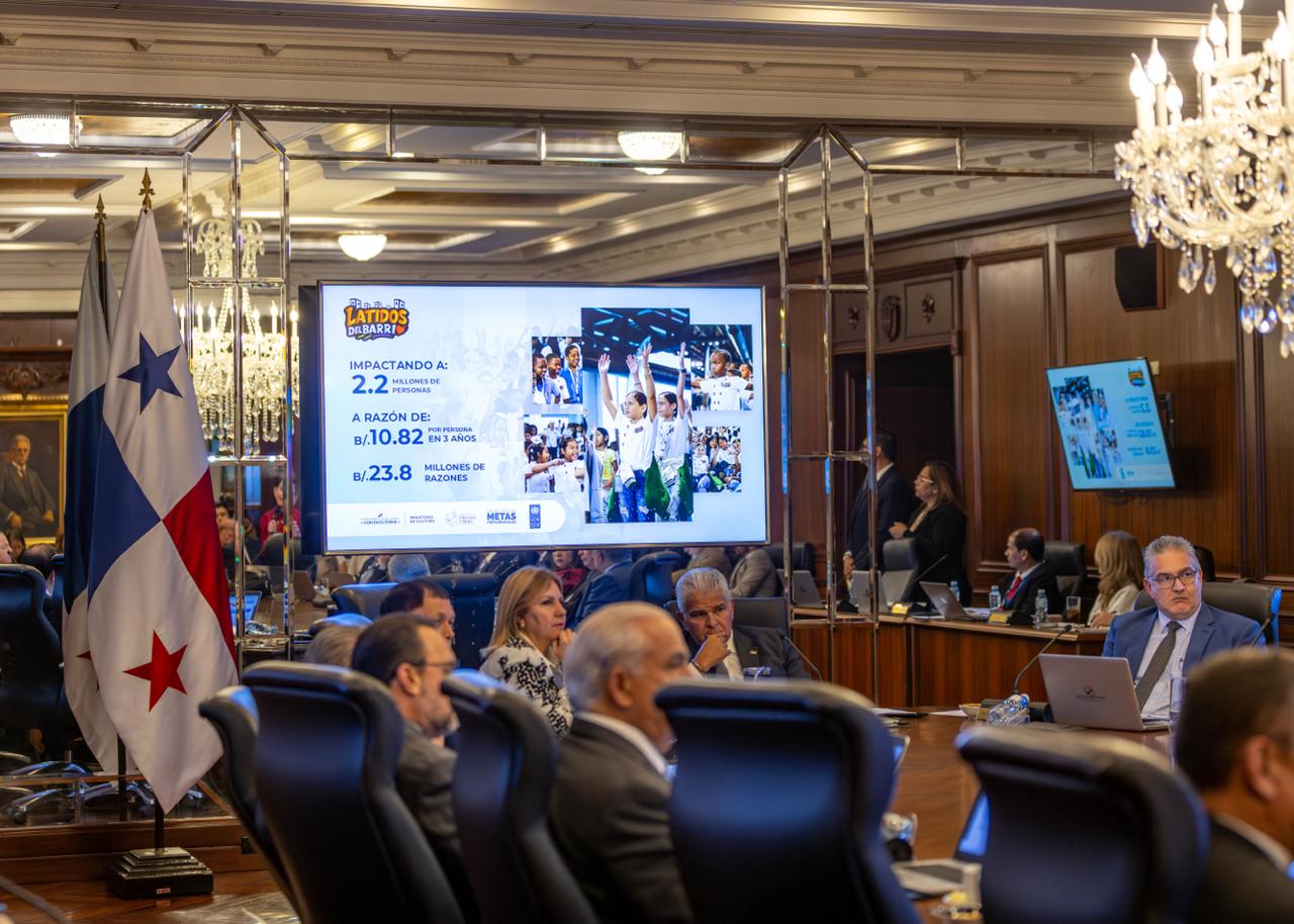 La Primera Dama de la República, Maricel Cohen de Mulino, y la Ministra de Cultura, María Eugenia Herrera, presentaron este martes ante el Gabinete Ejecutivo el proyecto Latidos del Barrio, una iniciativa de alcance nacional orientada al fortalecimiento de las comunidades a través del arte, la cultura, el deporte y la participación social.