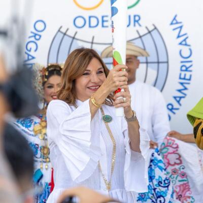 Durante la actividad, la Primera Dama de la República, Maricel Cohen de Mulino, participó en este momento simbólico que representa el compromiso de Panamá como país anfitrión.